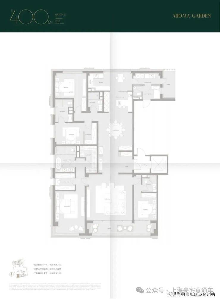 399.76㎡户型(6层):总价约6308万,单价157800元/㎡。空间尺度升级,厨房与家政间、客厅无缝衔接,操作动线流畅;保姆间双开门设计,出入便捷不打扰主人生活;南面客房卫生间均实现干湿分离,细节处彰显居住品质,适合多代同堂或注重生活质感的家庭。