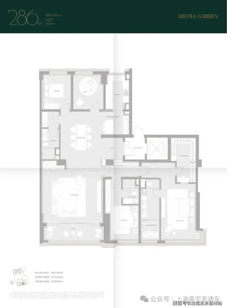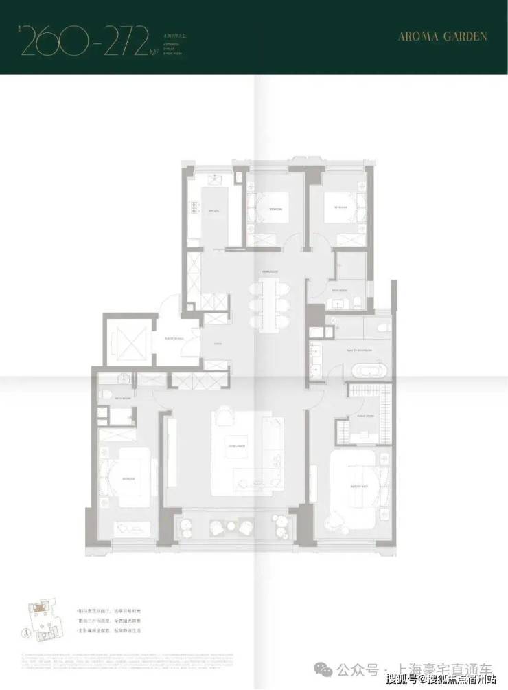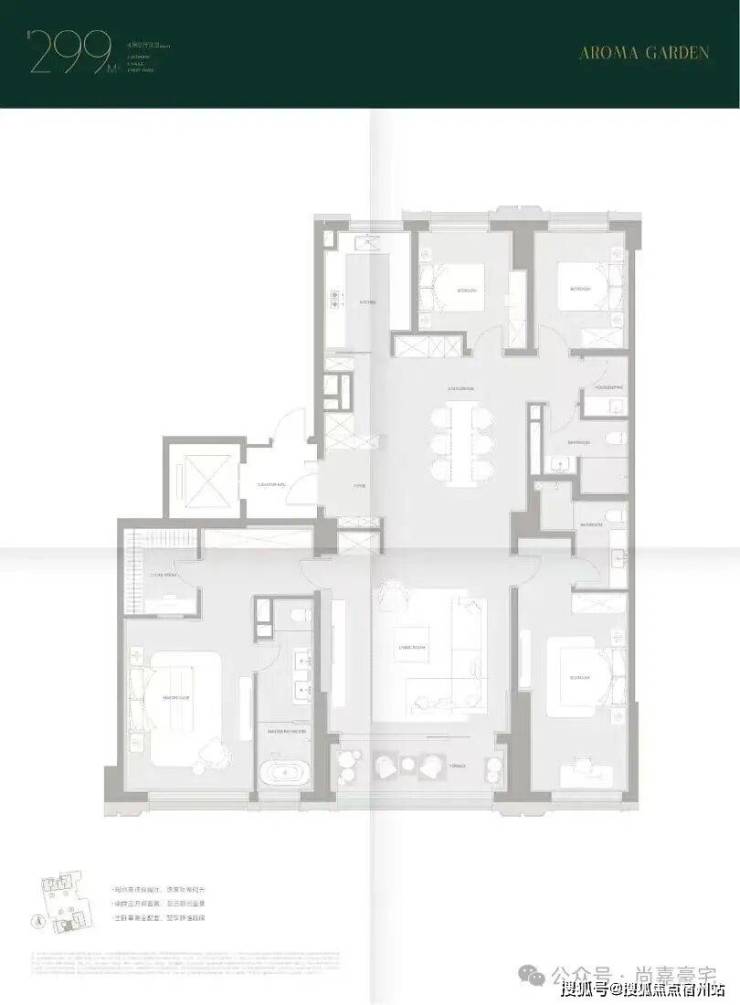 299.71㎡户型(11层):总价约5395万,单价180000元/㎡。大横厅设计搭配超大采光面,客餐厅南北分布,动静分区合理;全套房配置保障居住私密性,主卧朝南采光优越,书房与主卧相连,形成独立的静谧办公空间;次卧连接阳台,通风采光俱佳,满足家庭起居与社交需求。