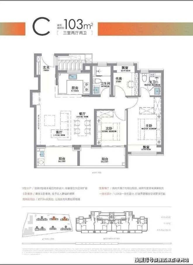 “南向双阳台+南北双飘窗”,构筑真3房户型!