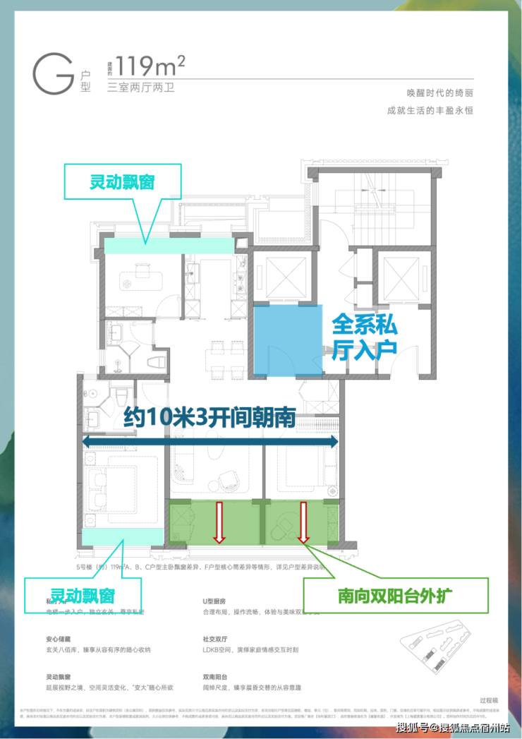 配合“多阳台半赠送”等空间策略,实现了令人惊叹的 约94%超高实得率 (119㎡亦达约91%)。