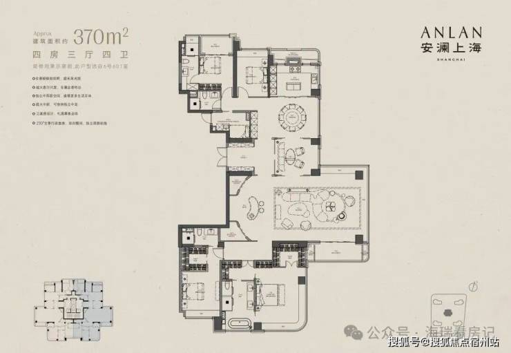 本次入市均价约17.88万/㎡,主力户型为建面约192/238/275/365㎡改善大平层。项目是上海首个全域抬板豪宅社区,涵盖多阳台+全景舱等创新设计,将于12月26日开盘。