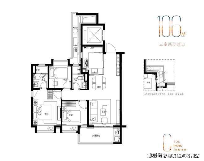 我们重点来看建面约106㎡新品和建面约143㎡边厅户型。