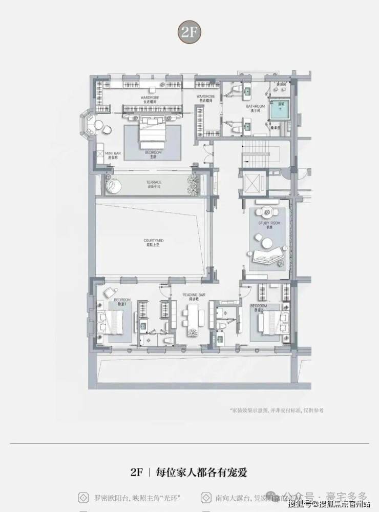 样板间二楼设计为了两件套房卧室及书房空间: