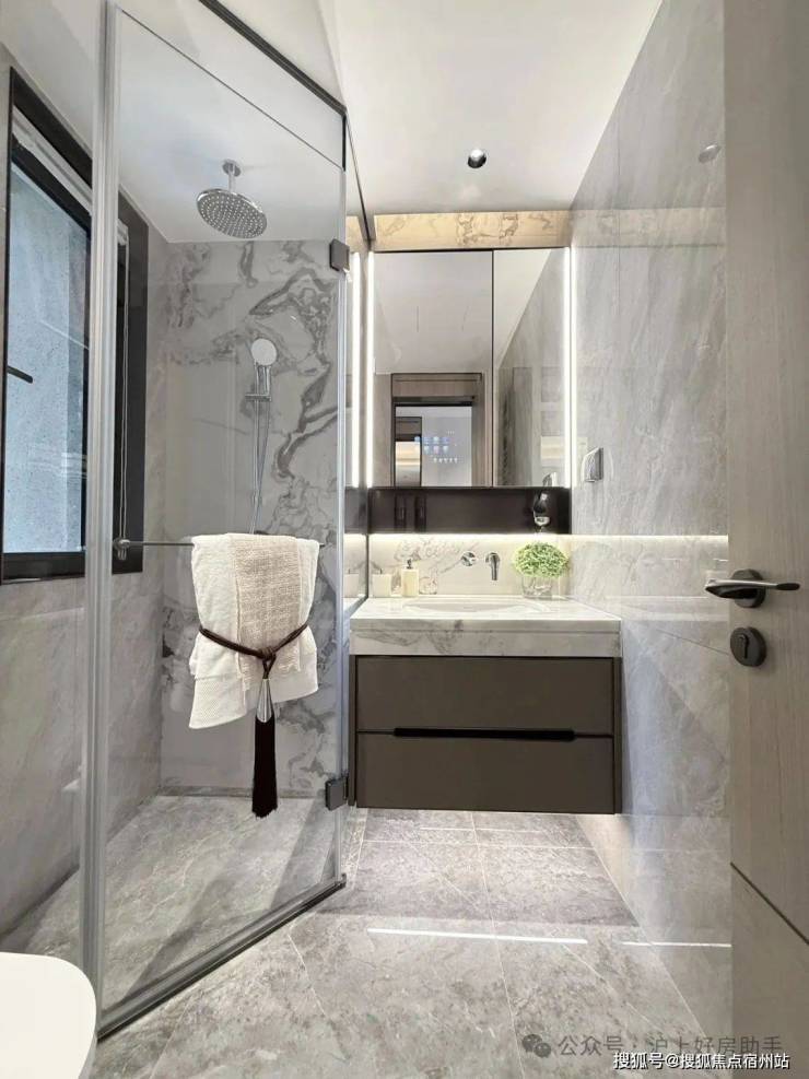 卫生间同样毫不逊色,高端卫浴品牌杜拉维特的台盆、壁挂智能马桶,高仪的龙头、淋浴花洒,一应俱全。
