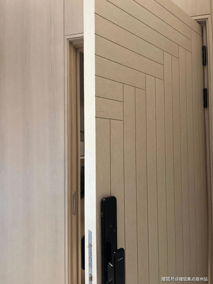装甲门入户,升级的门板厚度,搭配德国博世(或同等档次品牌)智能锁,带来沉稳安全的厚重质感,每次开启都身份感满满。