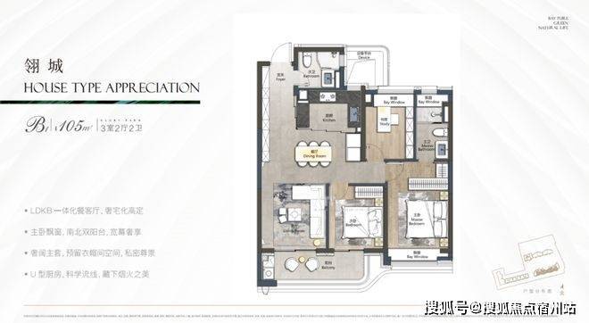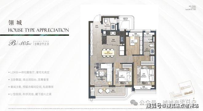 先来看项目主推建面约105㎡3房2卫:✅✅翎翠滨江售楼处电话:400 - 882 - 4258✅✅