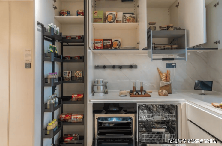 收纳细节也是一步到位:比如说玄关处的智能 除臭鞋柜, 到餐厅的 餐边柜、 厨房里的 收纳系统