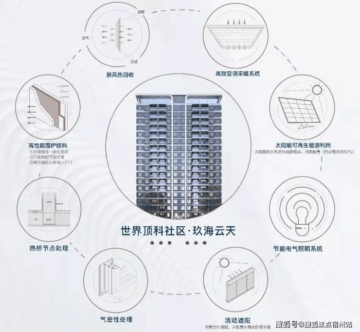 8大超低能耗技术 (通过外墙、屋面、门窗优异的保温隔热性能,结合具有高效热回收功能的新风系统的运作,使四季的室温维持在人体适宜的温度)之外,增加户式新风系统、高效VRV空调、局部太阳能热水系统、超低能耗围护结构、雨水回用系统、自动微喷灌系统、海绵城市等技术。