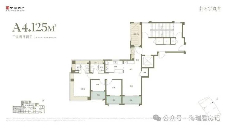 其次是建面约125㎡的户型,毫不夸张地讲,它是至今看过的最完美的四面宽户型。如果你的预算正好在120㎡左右,无需看其他,这个户型就是天花板!