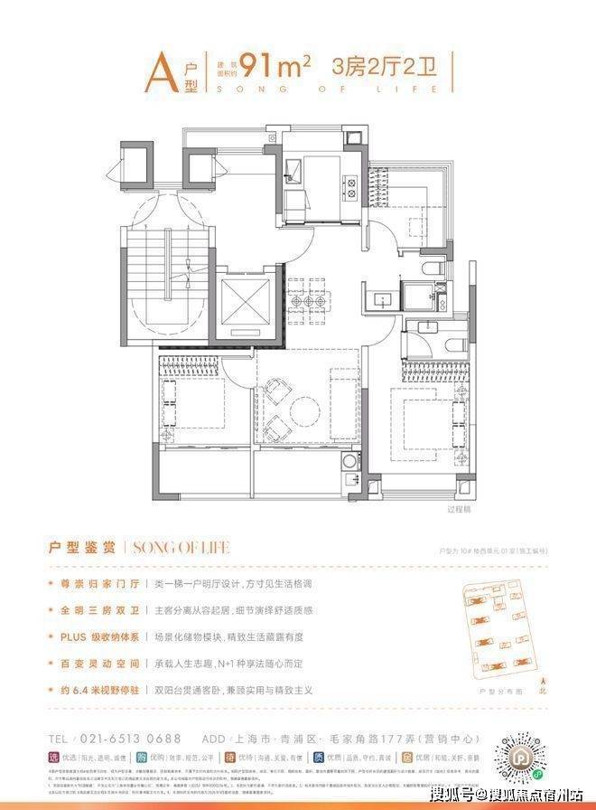 建面约91㎡三房两卫是“极致利用”保利虹桥和颂售楼处电话☎:400-8266-670✅✅