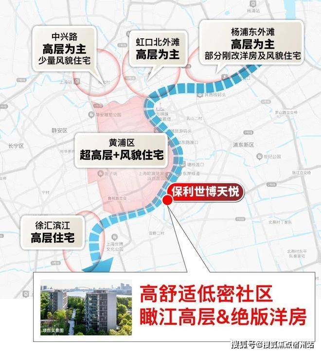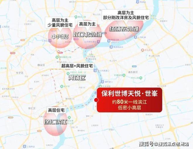 保利·世博天悦,站位世博滨江板块核心,与黄浦江边直线距离仅约80米,地段价值不言而喻。