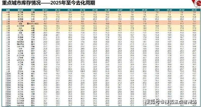 这是中指报告里重点一二三四线城市库存情况。