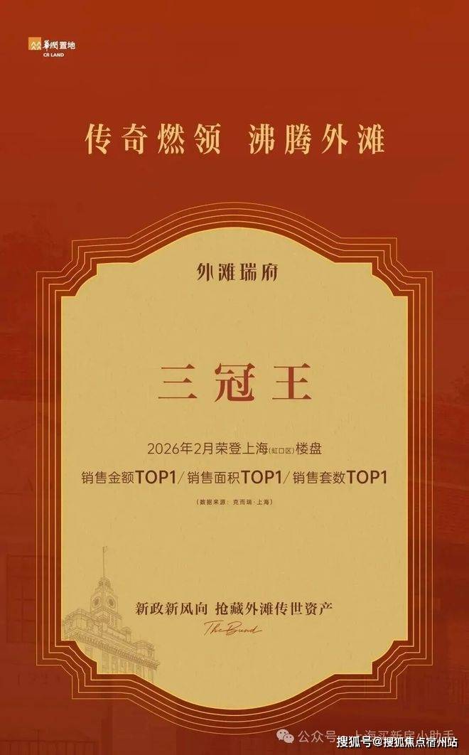 而如果你把时间再往前推到2月,会发现这并非偶然——外滩瑞府一举拿下虹口区楼盘销售金额TOP1、销售面积TOP1、销售套数TOP1,成为当月虹口“三冠王”✅外滩瑞府售楼处电话:400-833-6309(官方售楼处电话)。