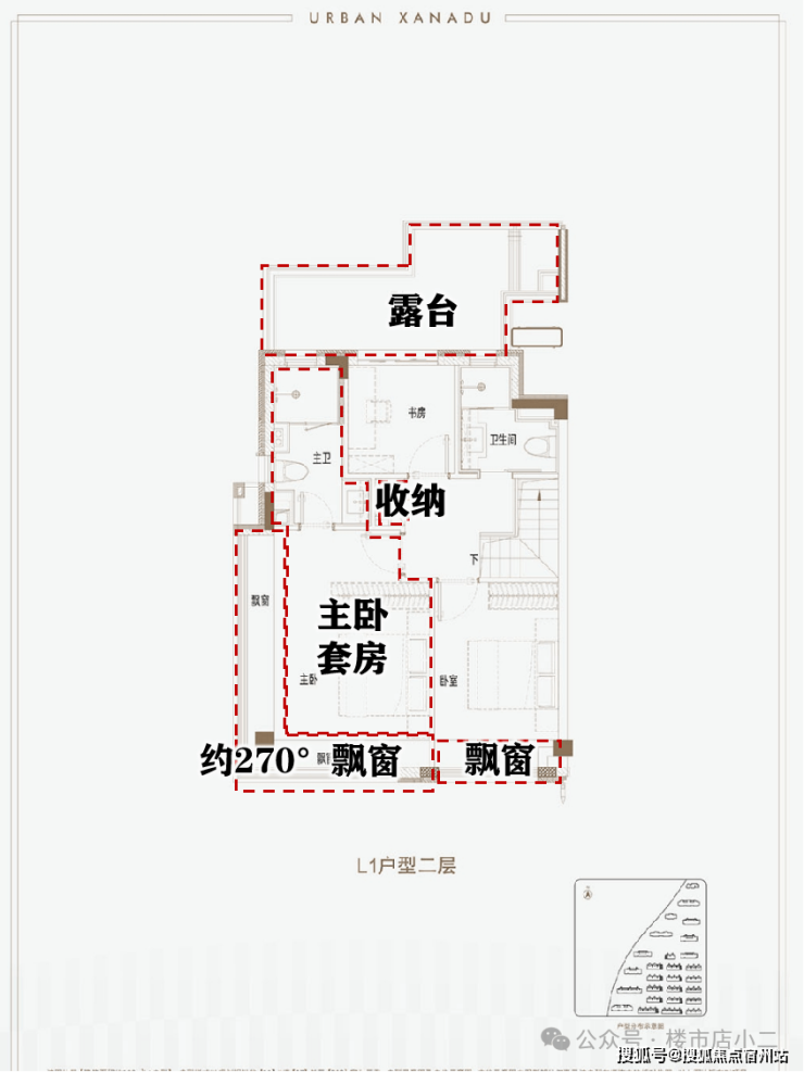 建面约139㎡上叠户型,三层是会客区,四层是居住区,阳台+露台+多个飘窗设计,附加空间非常大,在别墅类产品中实属罕见!