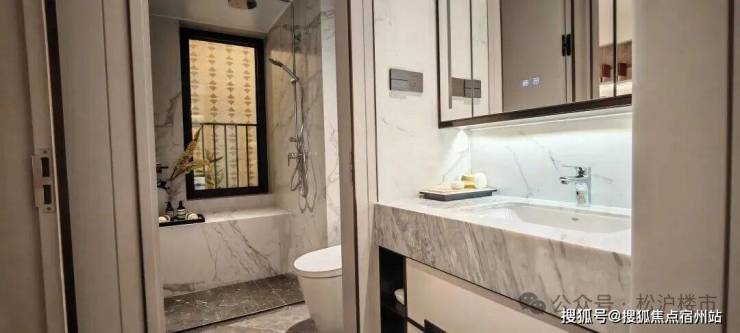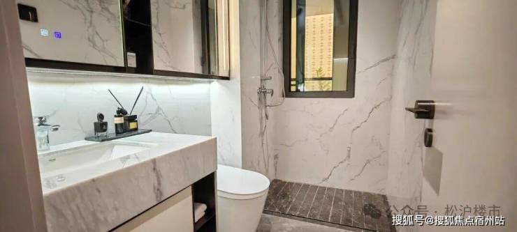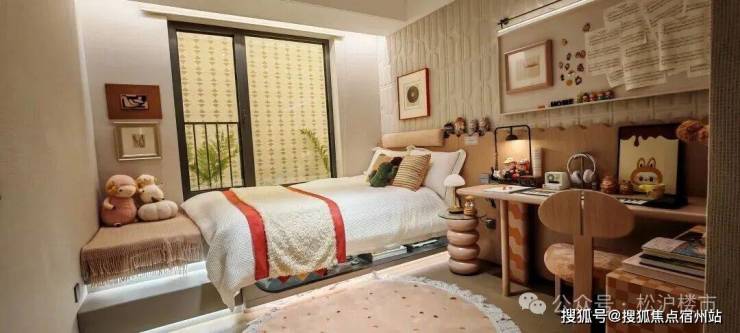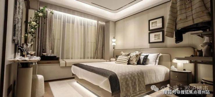 主卧套房设计同样让人惊喜:南向超大景观飘窗引景入室,放完标准双人床后,北侧还能打造整面衣柜;全明主卫功能分区清晰,定制淋浴房保障干湿分离,镜柜内置美妆冰箱,细节处尽显品质感。