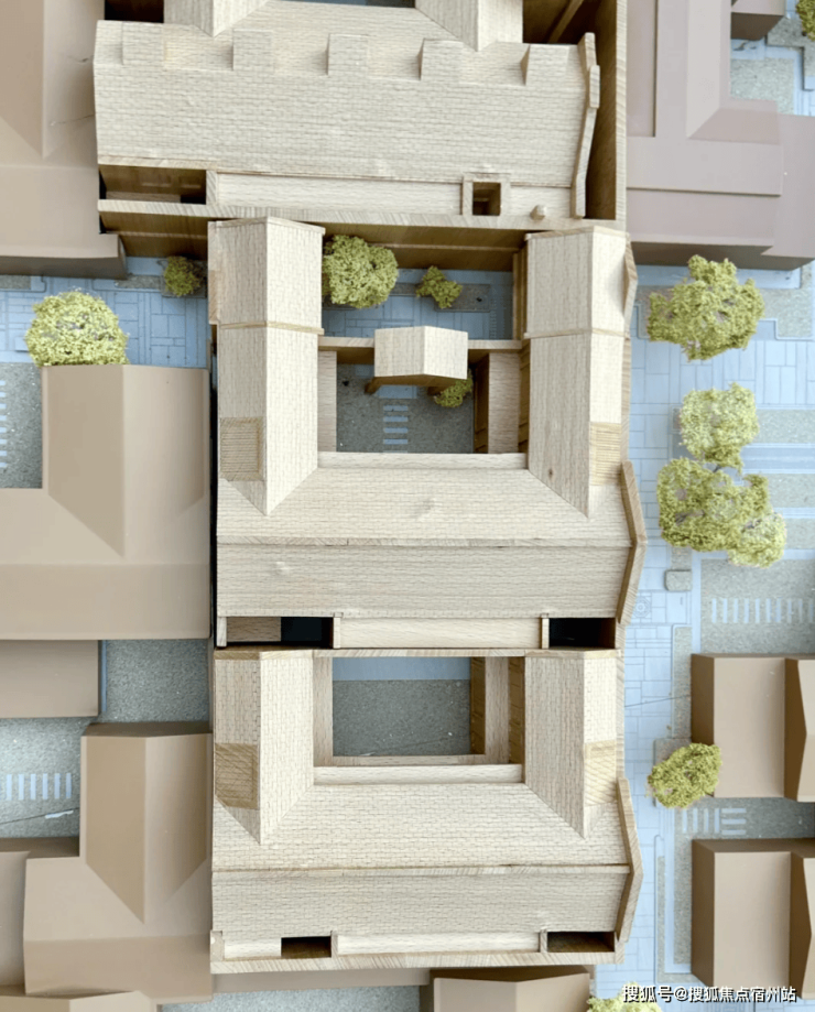 合院地上三层,面积段约210-500㎡,计合院82套。