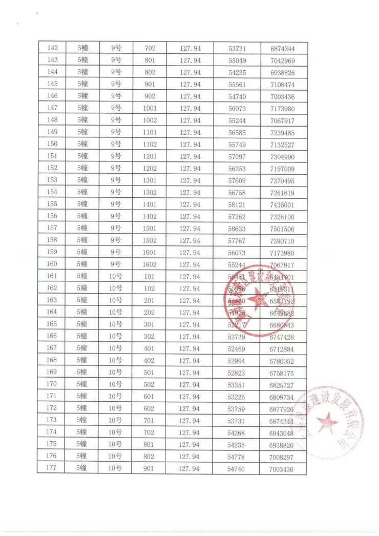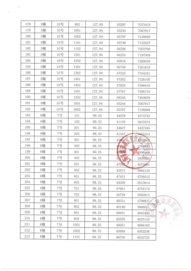 上期一房一价表: