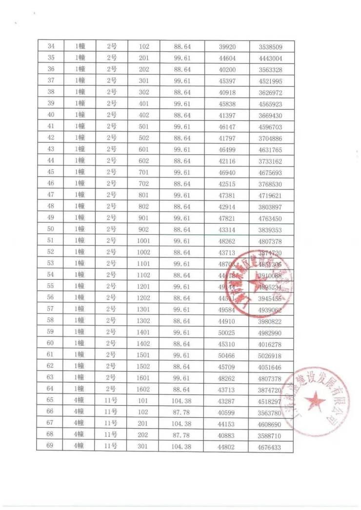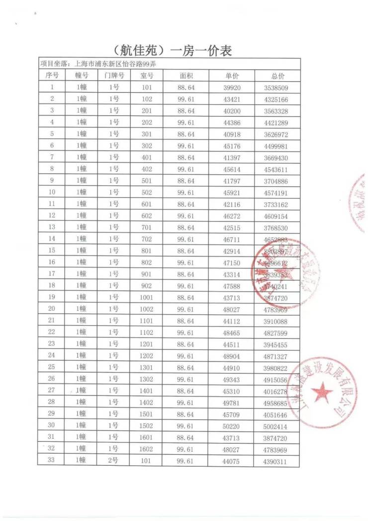 一房一价表: