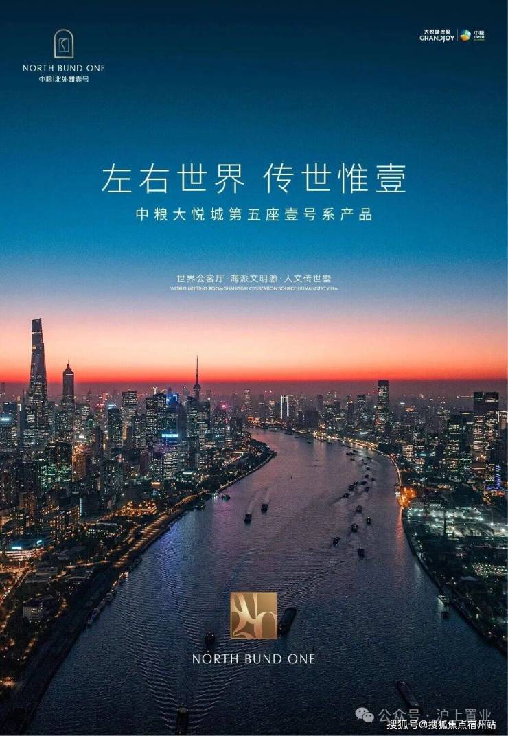 中粮北外滩壹号NORTH BUND ONE中粮大悦城上海第五座壹号系壹号之上 再造壹号单价:14-16万建面约185㎡/228㎡天际大平层建面约190㎡/210㎡/280㎡海派风貌墅即将入市,敬请期待城市展厅【壹号会客厅】现已开放,诚邀参观