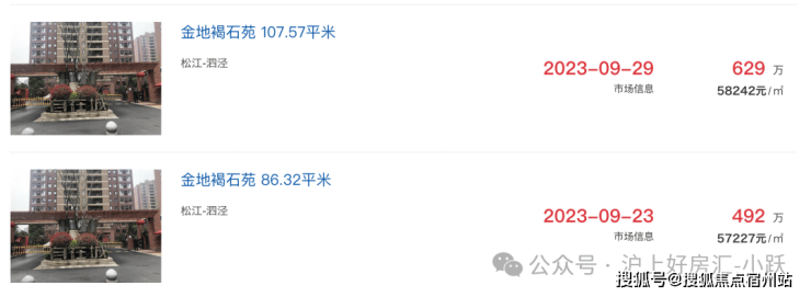 其他次新小区,比如泗泾大盘金地玺悦,二手房成交价也都在6.3-6.9万/㎡之间。