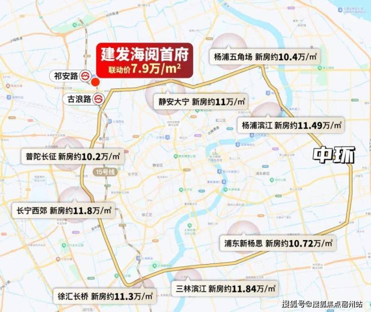 相比之下,联动价仅约7.9万/㎡的桃浦15号线地铁房——建发海阅首府,俨然是整个中环肉眼可见的价格洼地!