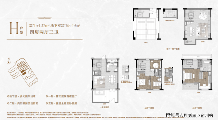 户型设计上, 上下四层空间+超多附赠面积,有天有地, 将居住的体验感拉满!