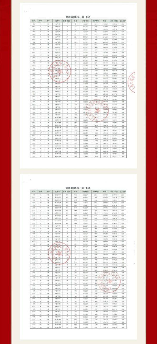 项目一房一价表