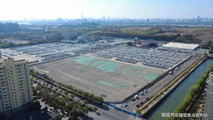 现场看到地块已平整清理干净,周边空地停满了商品车。