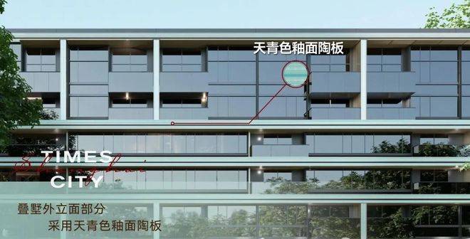叠墅立面则部分采用天青色釉面陶板,同样融合大面玻璃开窗(LOW-E玻璃),更大程度的为业主带来宽绰视野,体验摩登生活。