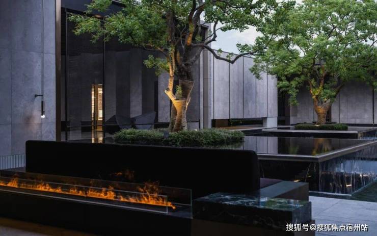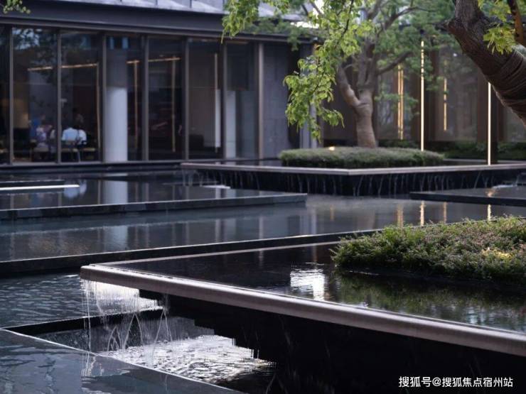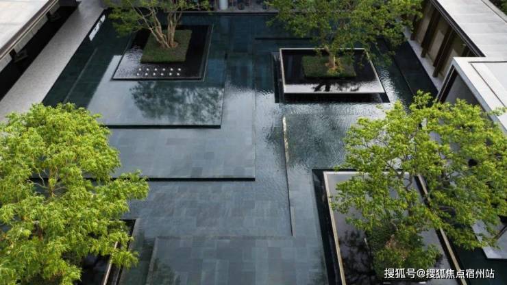 项目的核心是一个如绿翡翠般的环抱式水院空间,通过统一的设计语言及功能组合,围合出一个内向聚焦精致的静安之境。