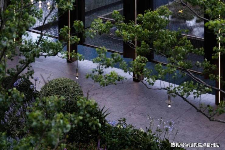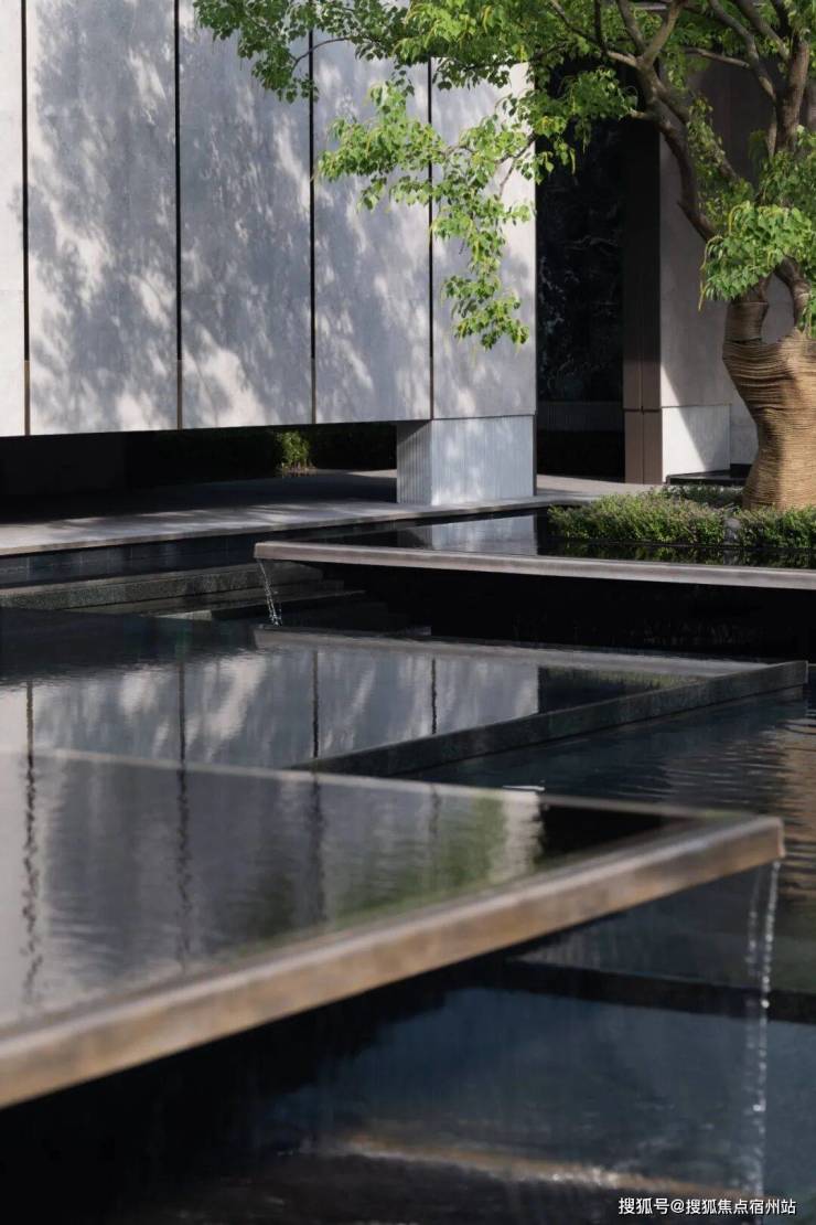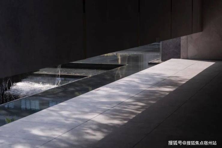 一缕细泉从绿宝石般的景墙中流入水台,耳畔传来潺潺的水声。树影跃动与水中倒影相谐,呈现另一个观赏自然的维度。