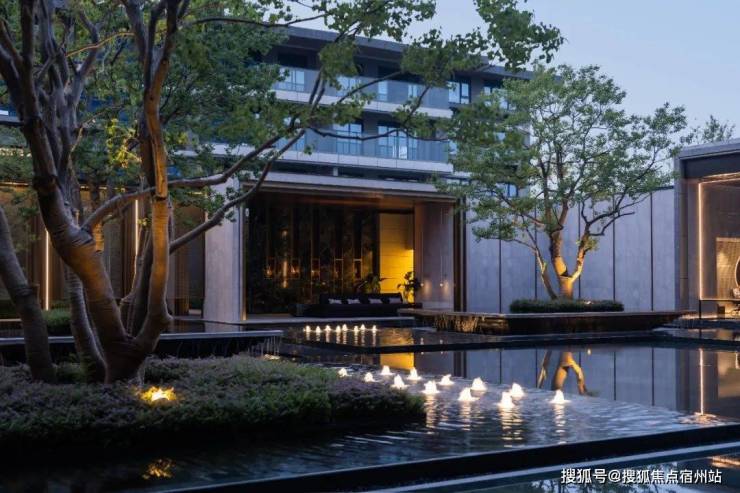 步入酒店式大堂,先打造了一幅朦胧画境。光线、树影、镜水透过镂空门帘,带来无限遐想。一道屏障,与纷繁的世界暂别,让归家成为一场静安之旅。