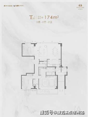1. 建面约 174㎡ 3 房 2 厅 2 卫(洋房)