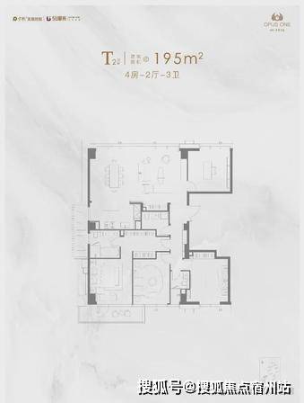 2. 建面约 195㎡ 4 房 2 厅 3 卫(洋房 / 高层)