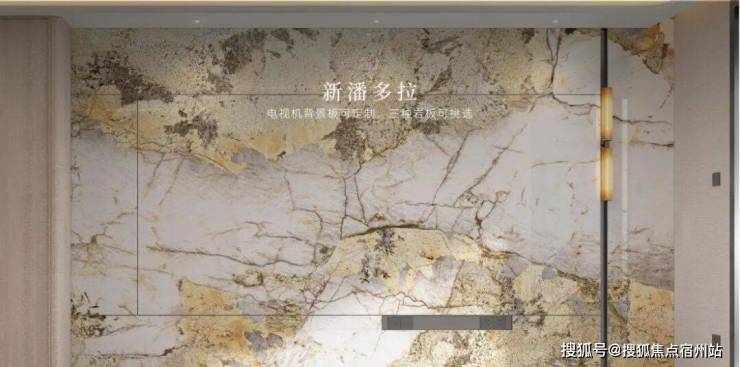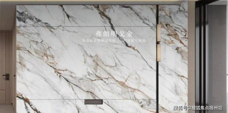 充分考虑业主的个性化需求,在电视背景板提供了新潘多拉、云中翡翠、弗朗明戈金三种结晶釉面岩板选择,成本更高,施工难度也更大。