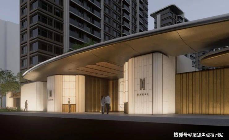 蓝灰色玻璃+仿石铝板+艺术涂料材质,穿插优雅线条,让建筑这张“脸”看起来更高级。One&Only酒店式门头。用雕塑体块、温润弧面和雅致线条,营造具有艺术格调的归家仪式感。