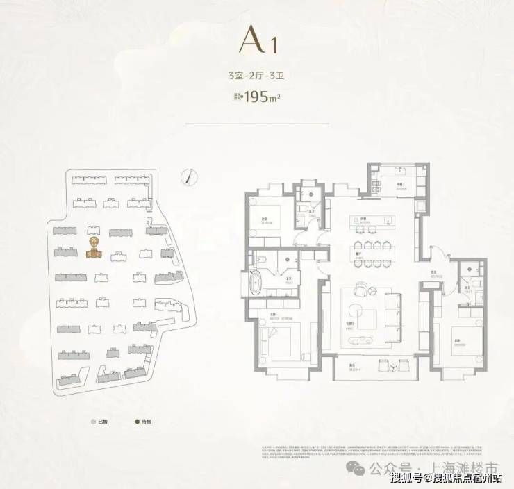 建面约195㎡户型:稀缺大平层返场,约7米宽厅+3套房设计+中西双厨,3年等1席!