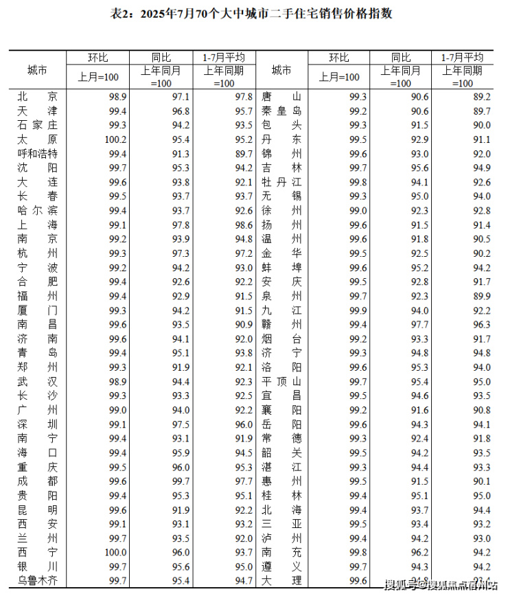 二手住宅价格方面,国家统计局数据显示,7月份环比上涨城市有1个,与上月持平;同比上涨城市为0,与上月一致。