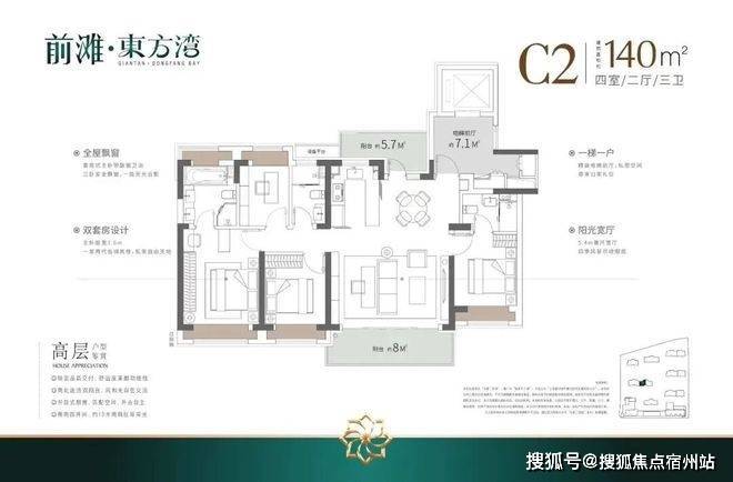 ④产品升级:全铝板立面+带恒温泳池会所+全部(类)1梯1户+标准层高3.1-3.15米,适配高端改善人群居住。