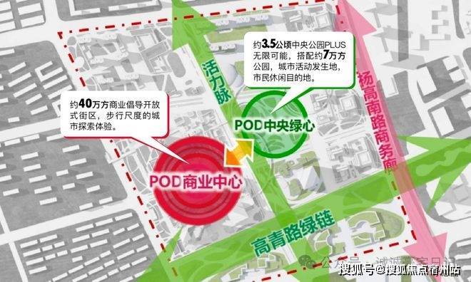 新杨思以公园为导向的功能混合开发模式✅✅华润翡雲悦府售楼处电话:400 - 882 - 4258✅✅,围绕公园与商业打造“POD中央绿心+POD商业中心”双心驱动,犹如将“世博文化公园”与“新天地”合而为一。