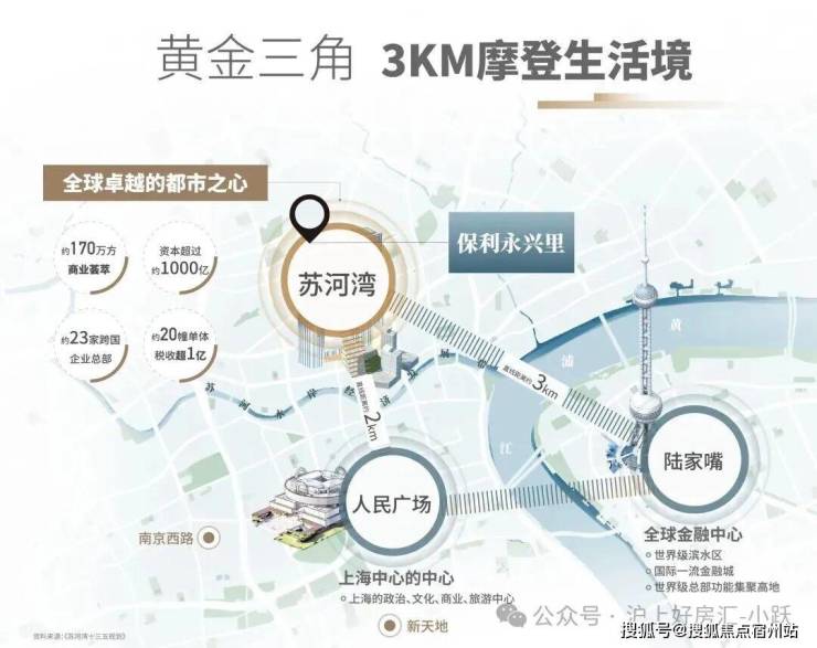 🛍️商业配套:距离市中心人民广场距离仅约2公里,苏河湾商圈直线距离约900米,距离北外滩直线距离约700米,距离大悦城商圈约1公里