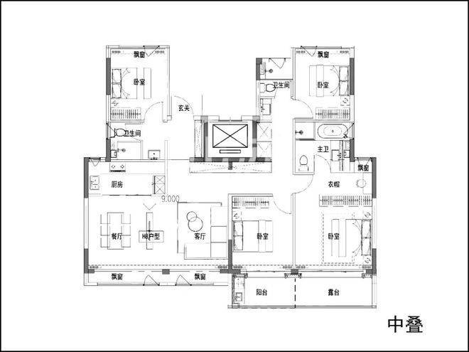 高层除140㎡户型为两梯两户以外,其余全部为两梯四户,中间套带连廊!