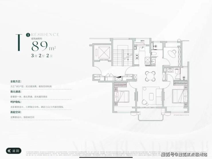 建面约89㎡ 3房2厅2卫:一梯两户,层高3.05米,相当于99竖厅户型的缩小版; 南北直通,全卧飘窗,南白整体面宽约9.75米,其中客厅面宽约3.55米,主卧面宽约3.2米!