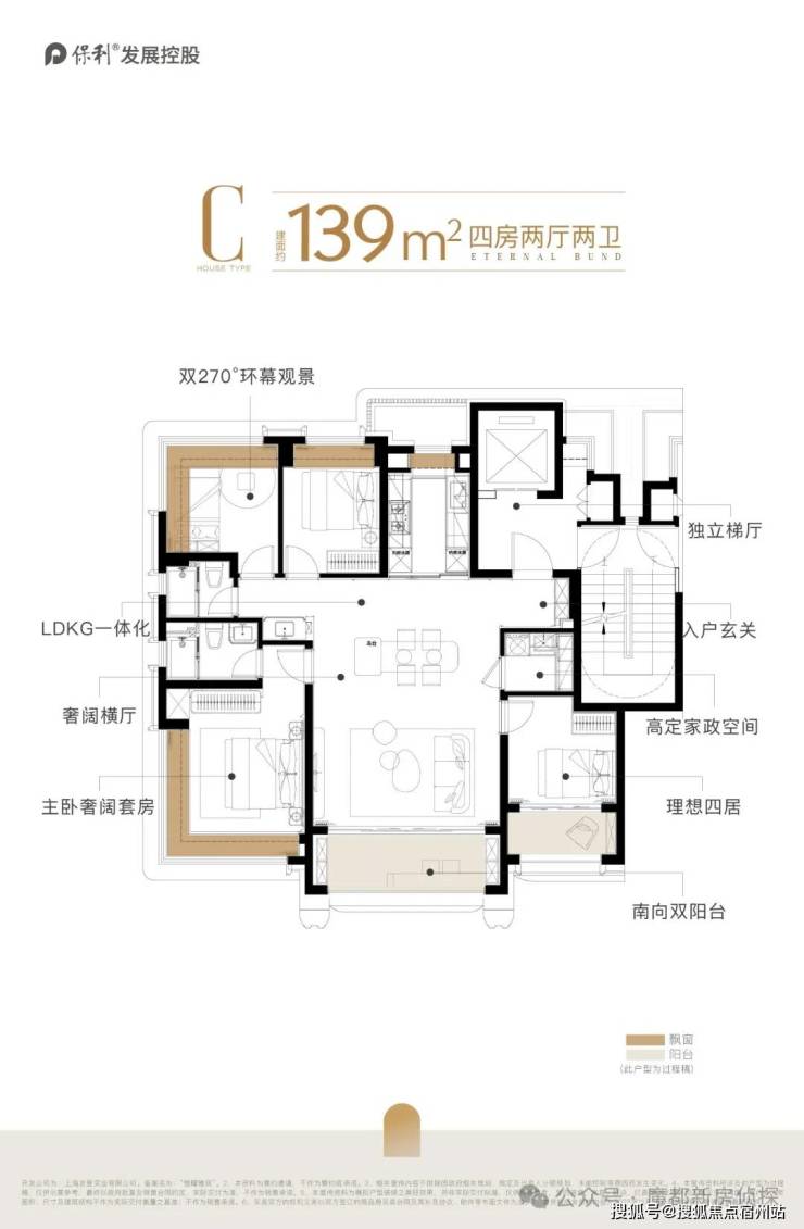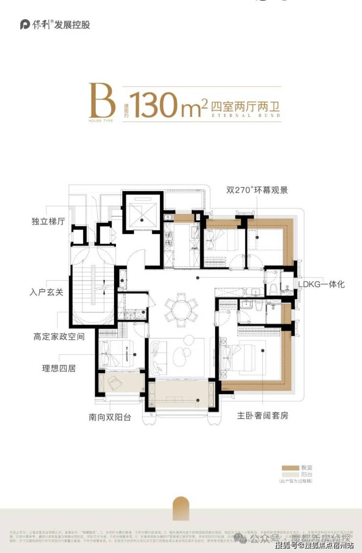 保利外滩曜建面约130㎡的实际使用率做到了约94%,双阳台+双约270°视野+一梯一户独立电梯厅+多飘窗。