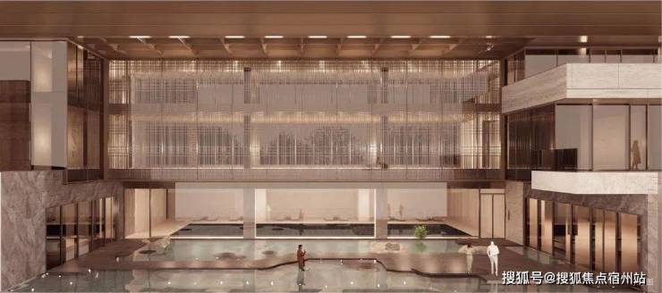 外立面方面,项目汲取广富林文化精髓再造东方屋宇, 采用渐暖色石材、银灰色及香槟色铝板和涂料的组合, 带来厚重与轻盈的平衡,在彰显文化豪宅的同时又包含国际风骨,整体呈现诗意东方之美。