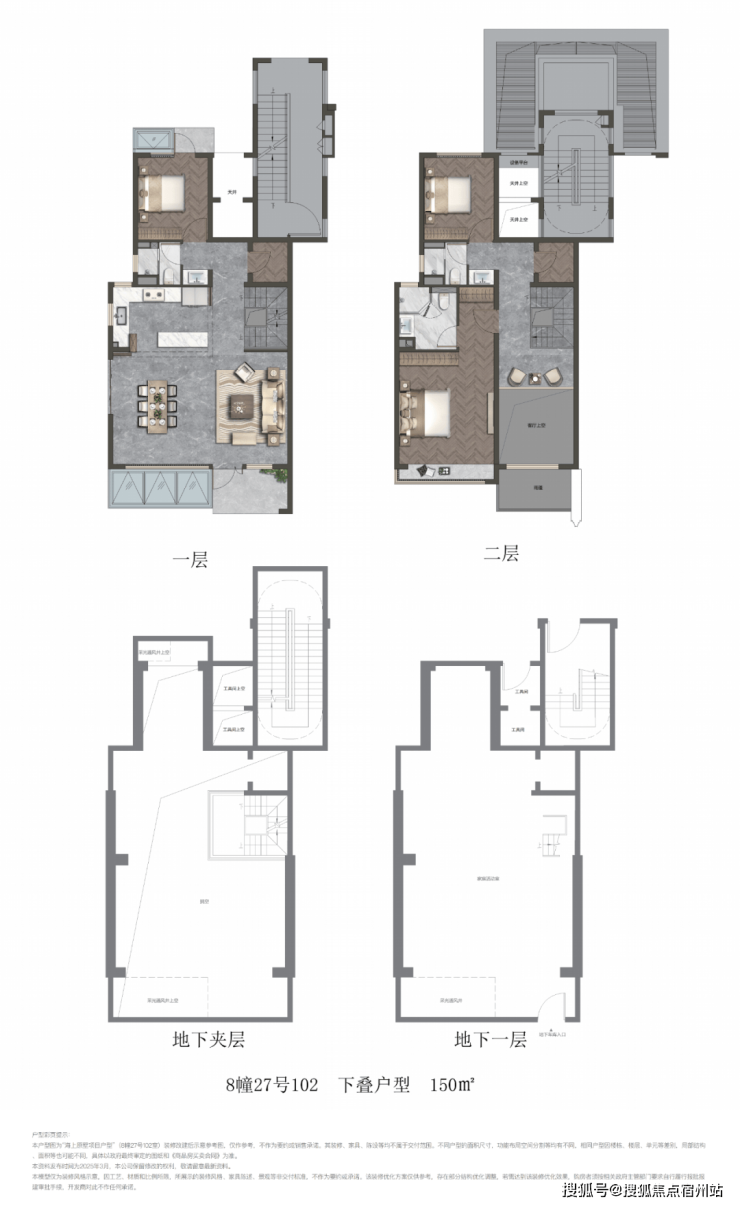 项目叠墅包含 建面约141㎡上叠和建面约150㎡下叠