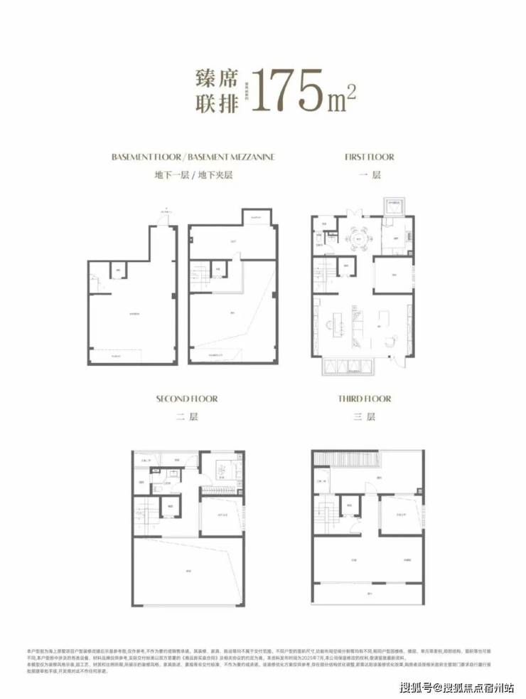 【国贸海上原墅】157-201m ² 联排别墅设计 约5.65米层高地下室一层客厅挑空约6.45米 ,还设计了类似 天井内庭院 空间(不计入建筑面积),这些灵动空间都能随业主心意改造。并且 三层配备双露台 ,听风细雨惬意非凡。