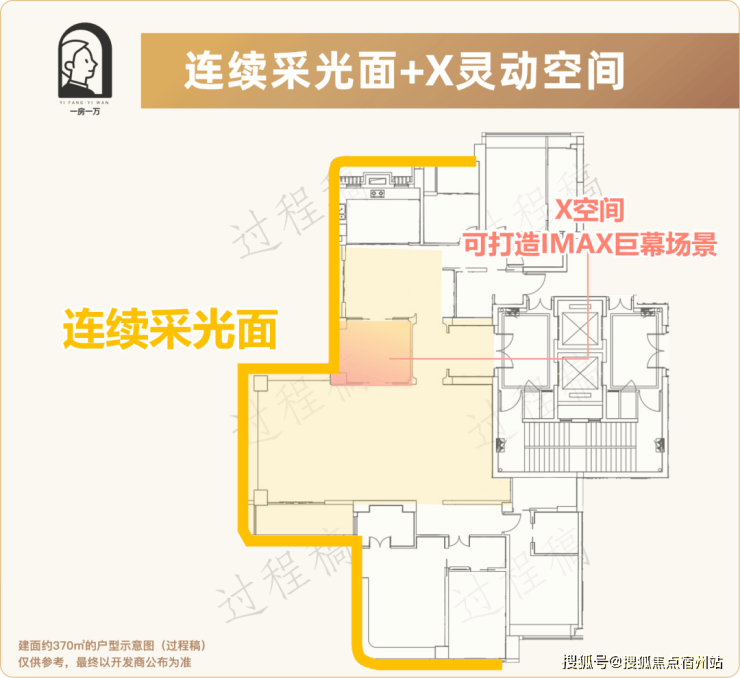 比如客厅中间的X空间,通过移动门可分可合。如果全部打开,可以创造出IMAX巨幕场景。