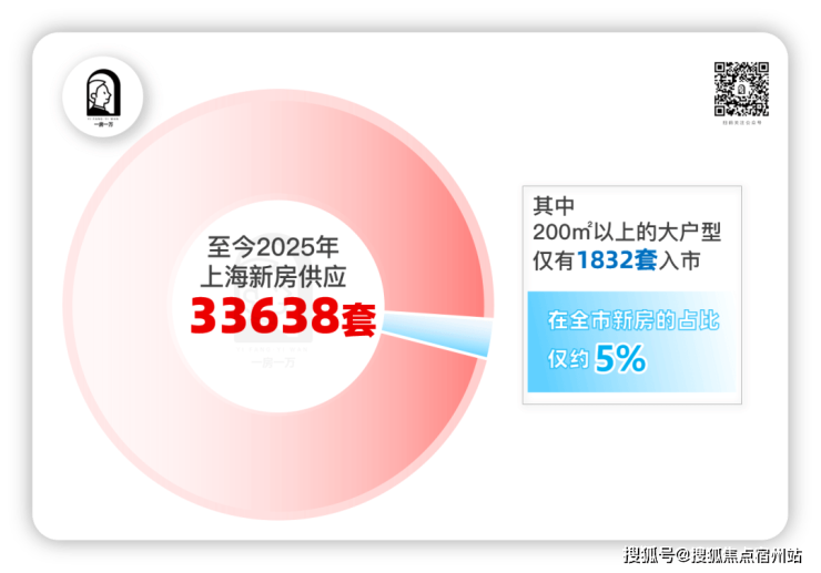 数据显示,2025年至今上海供应了33,638套新房,其中建面约200㎡以上大户型供应占比仅约5%。(数据来源:一房一万)