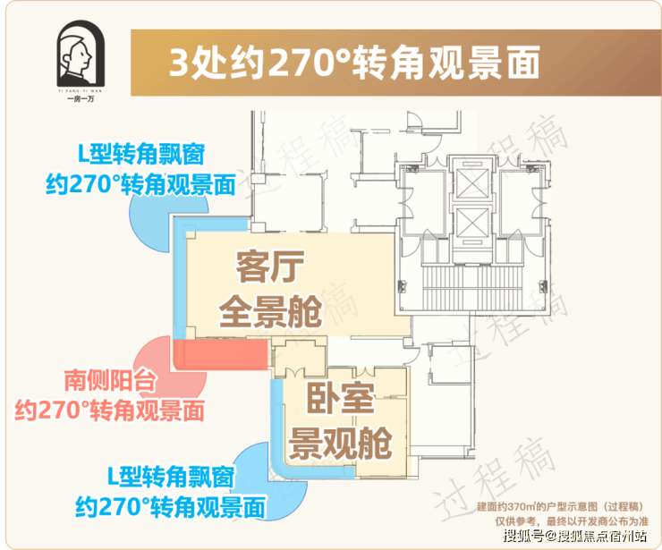 这一对景观的极致追求,更延伸至全屋——项目共打造3处最大约270°转角观景面。